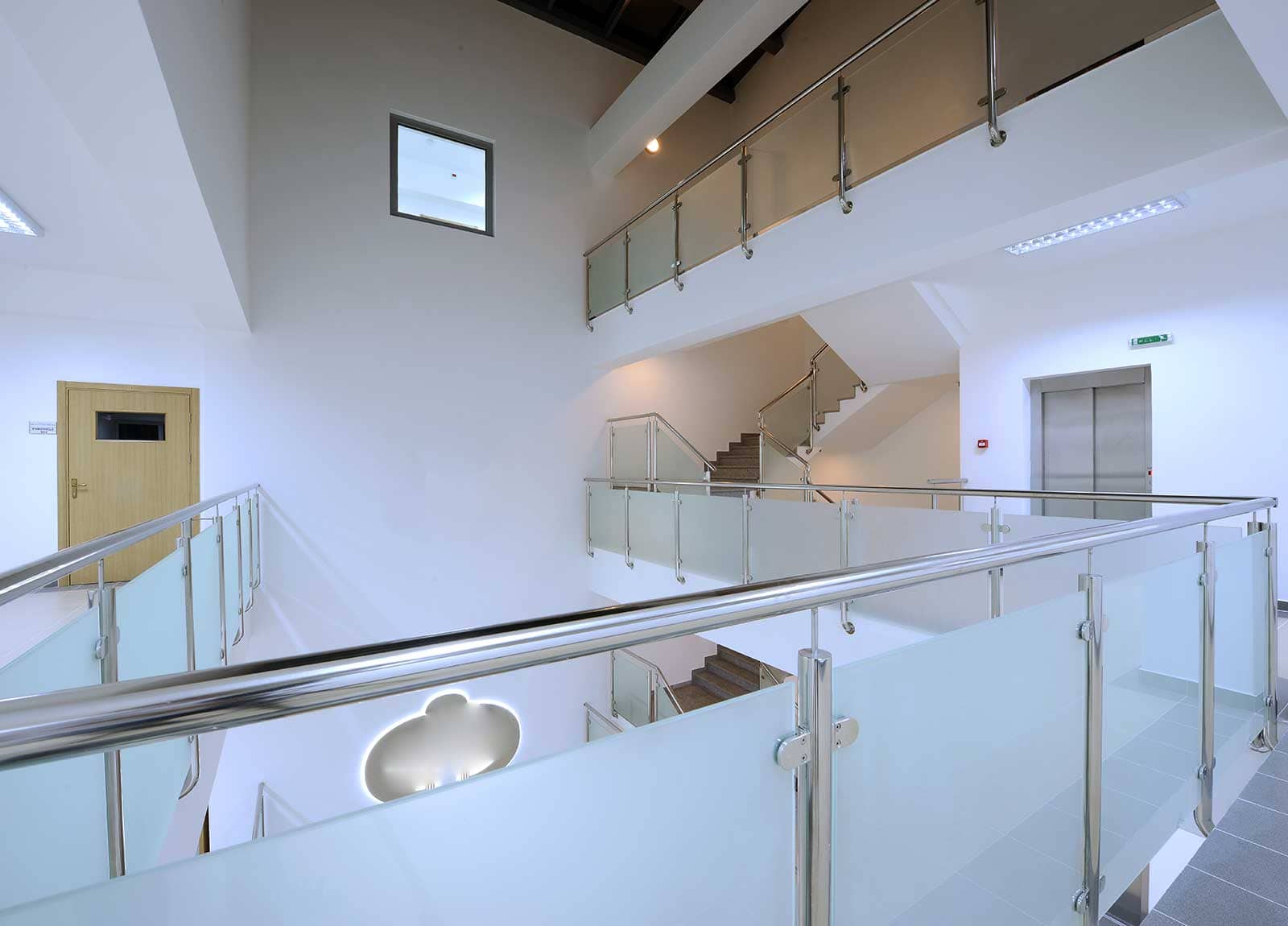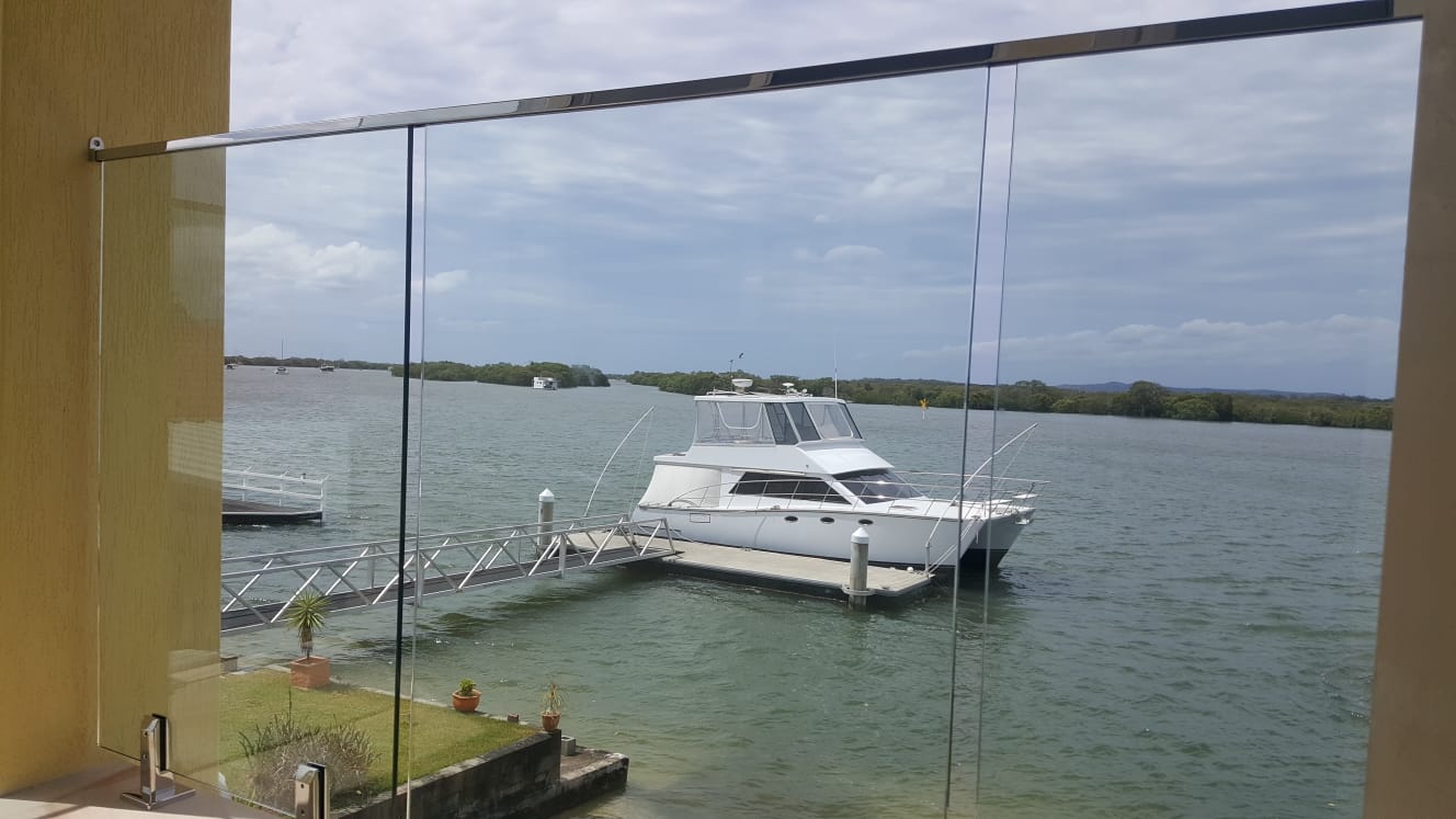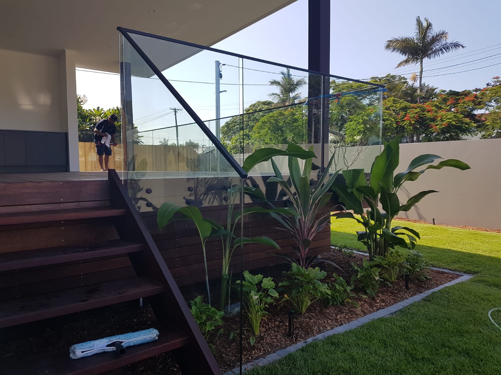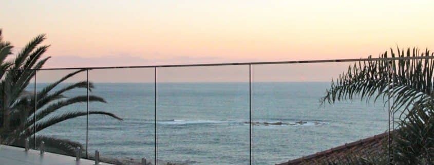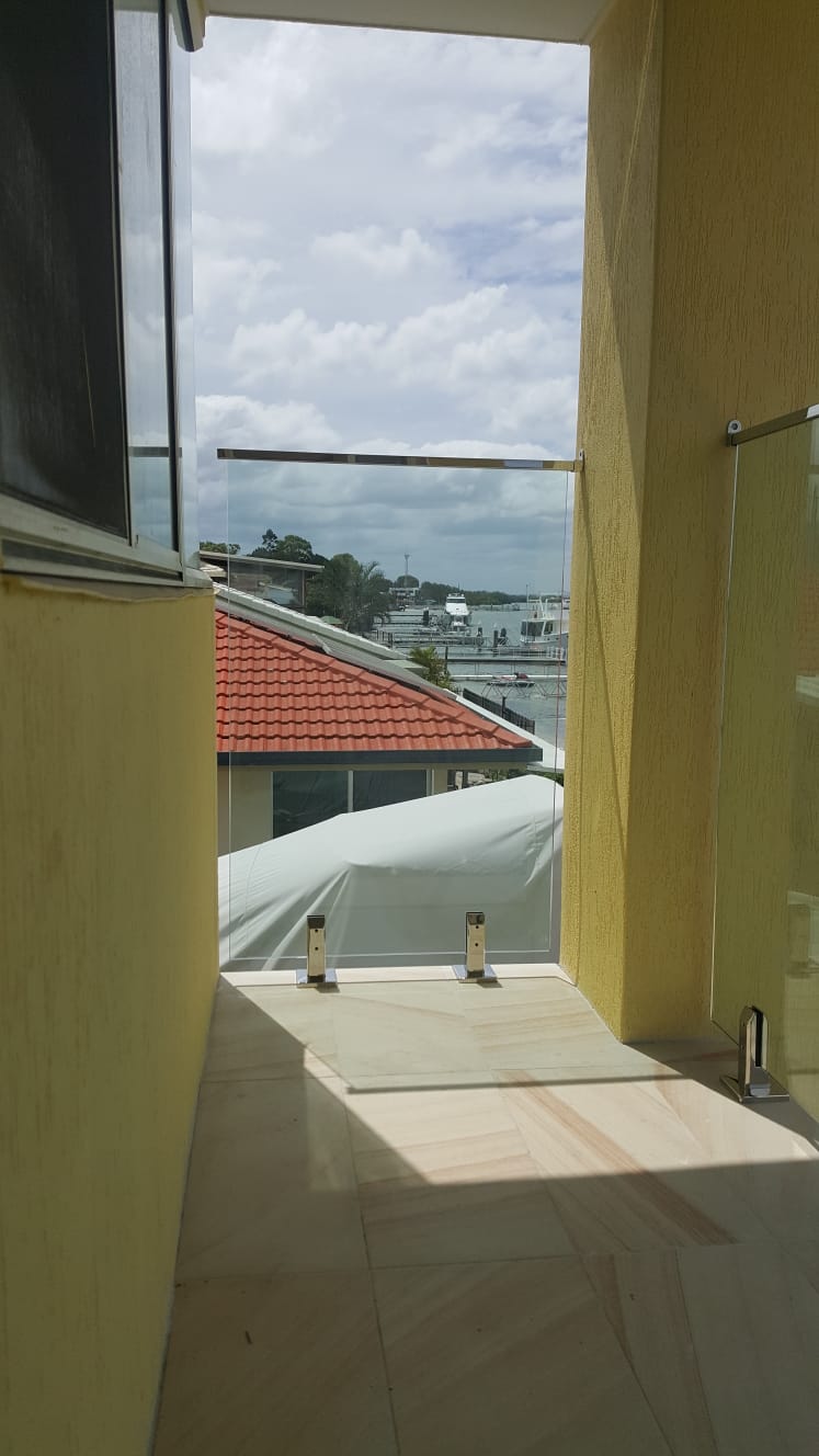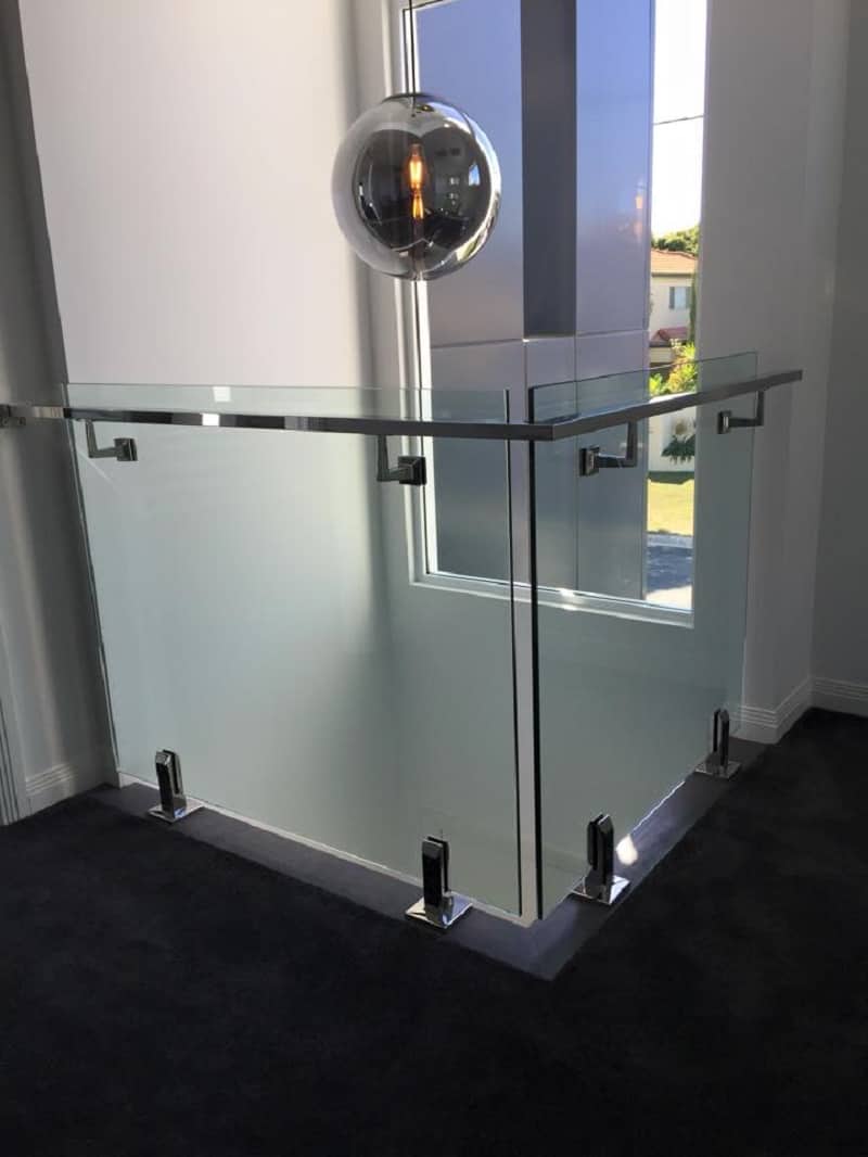Glass balustrade for an indoor or outdoor balcony. A glass balustrade can be used for a variety of residential and commercial applications.